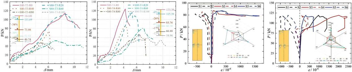 论文得出以下主要结论:(1)GFRP管海水海砂再生混凝土柱的主要破坏模式是GFRP管角部位置撕裂,表明GFRP管海水海砂再生混凝土柱的角部位置是轴向压缩载荷下的薄弱区域。这一发现可为其加固方法提供参考。(2)随着再生骨料置换率的增加,最大施加载荷、压缩韧性和初始刚度降低。但当再生骨料替代率不超过20%时,上述下降并不明显。一般来说,当再生骨料置换率不超过20%时,可以用再生骨料混凝土代替普通混凝土。(3)根据破坏模式和试验结果,本研究提出了GFRP管海水海砂再生混凝土柱在轴向载荷作用下的承载力理论计算公式。