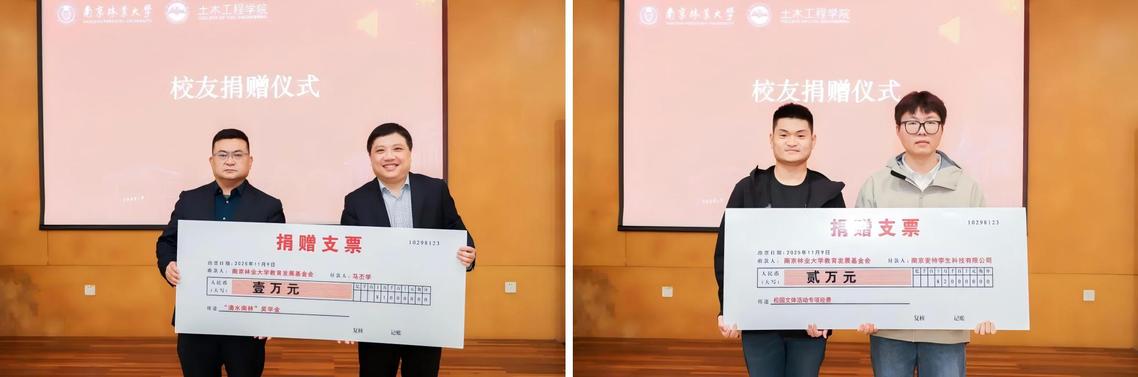 马丕学校友企业设立“滴水南林”麻豆av 奖学金 陈超校友企业设立校园文体活动专项经费