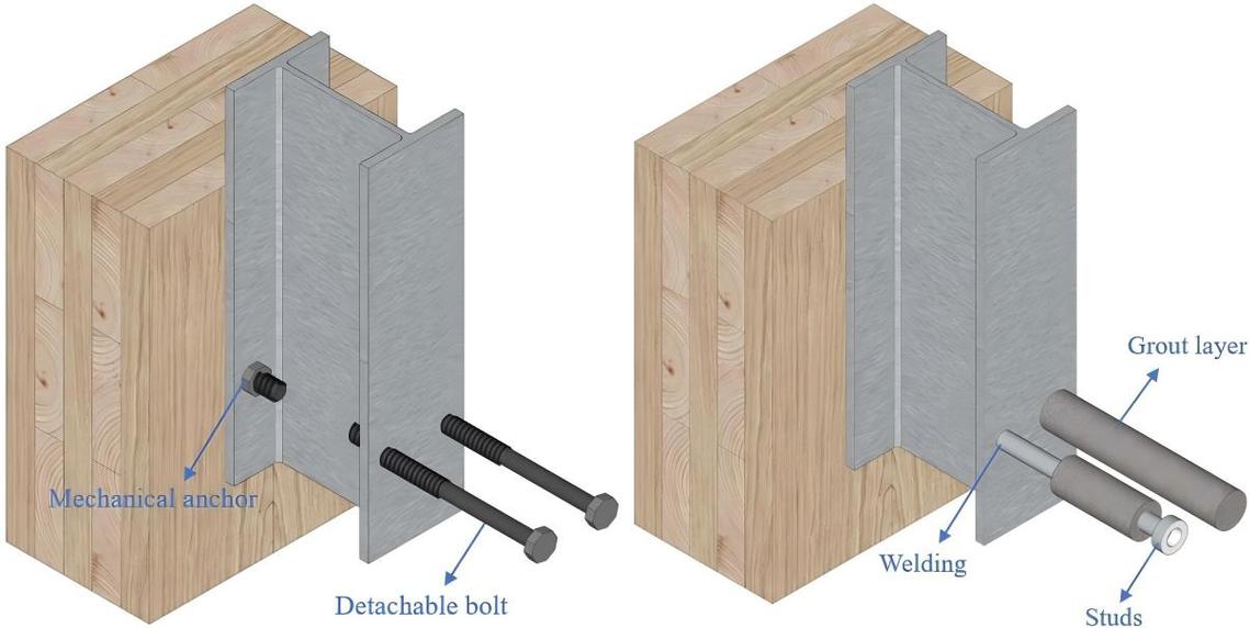 钢-CLT组合结构中焊接螺柱和可拆卸螺栓的对比