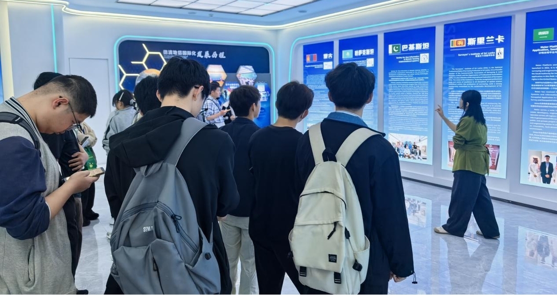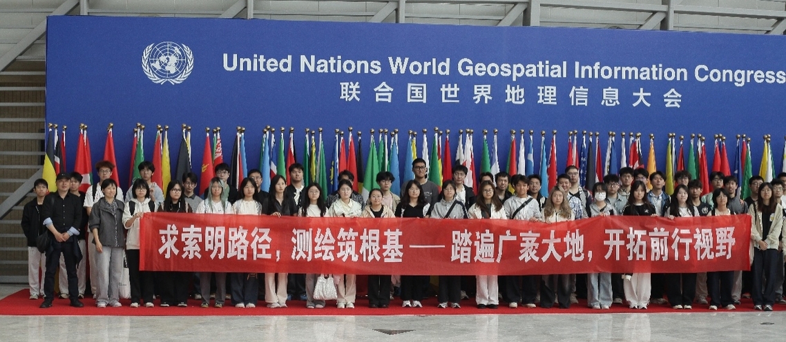 随后同学们来到了联合国世界地理信息大会会场,作为全球地理信息领域的顶级会议场所,恢弘大气的建筑风格和先进的会议设施让同学们叹为观止。会址内展示的历届大会成果,特别是中国测绘人参与的国际测绘合作项目案例,让同学们对测绘专业发展前景更加充满信心。